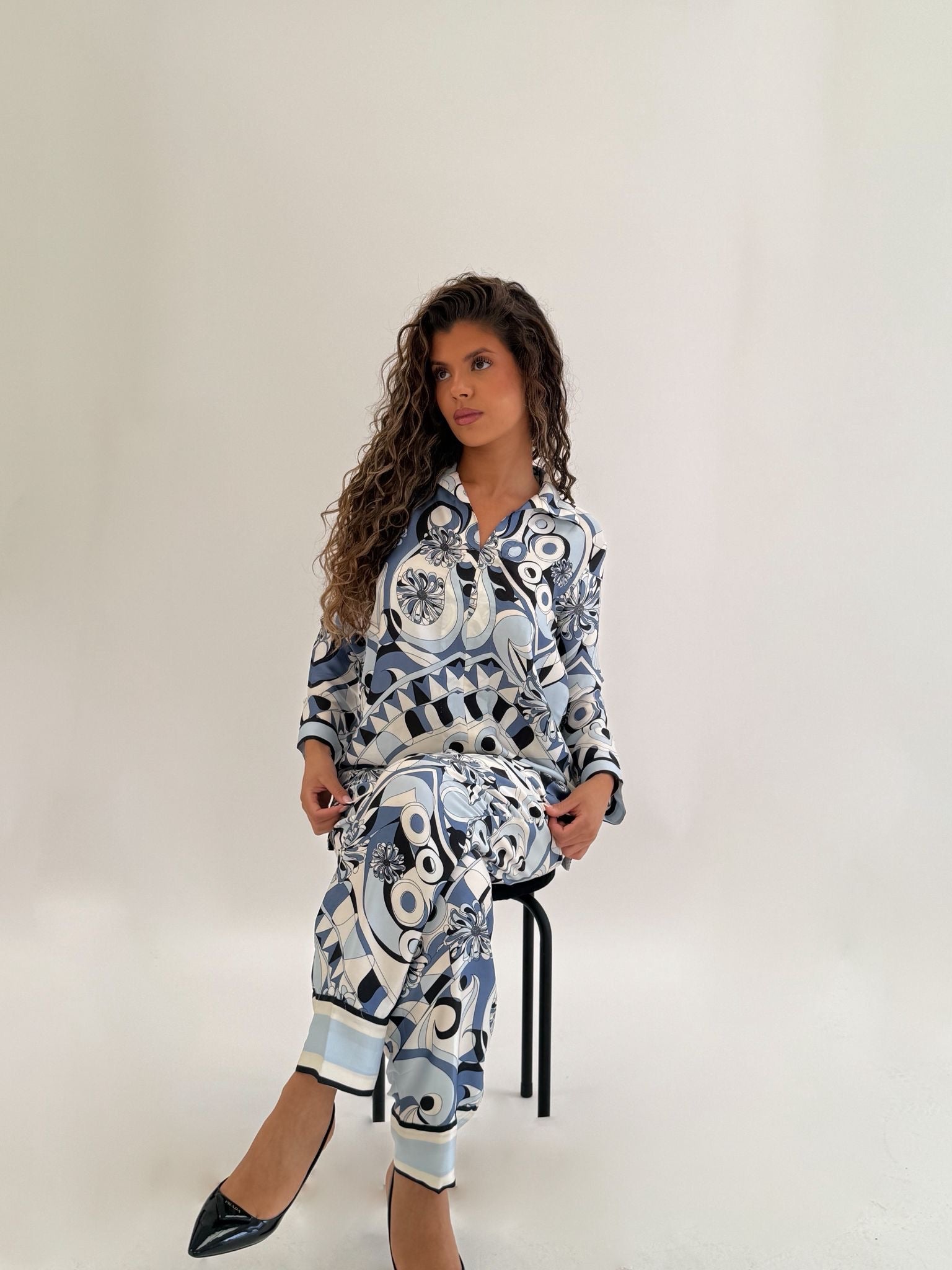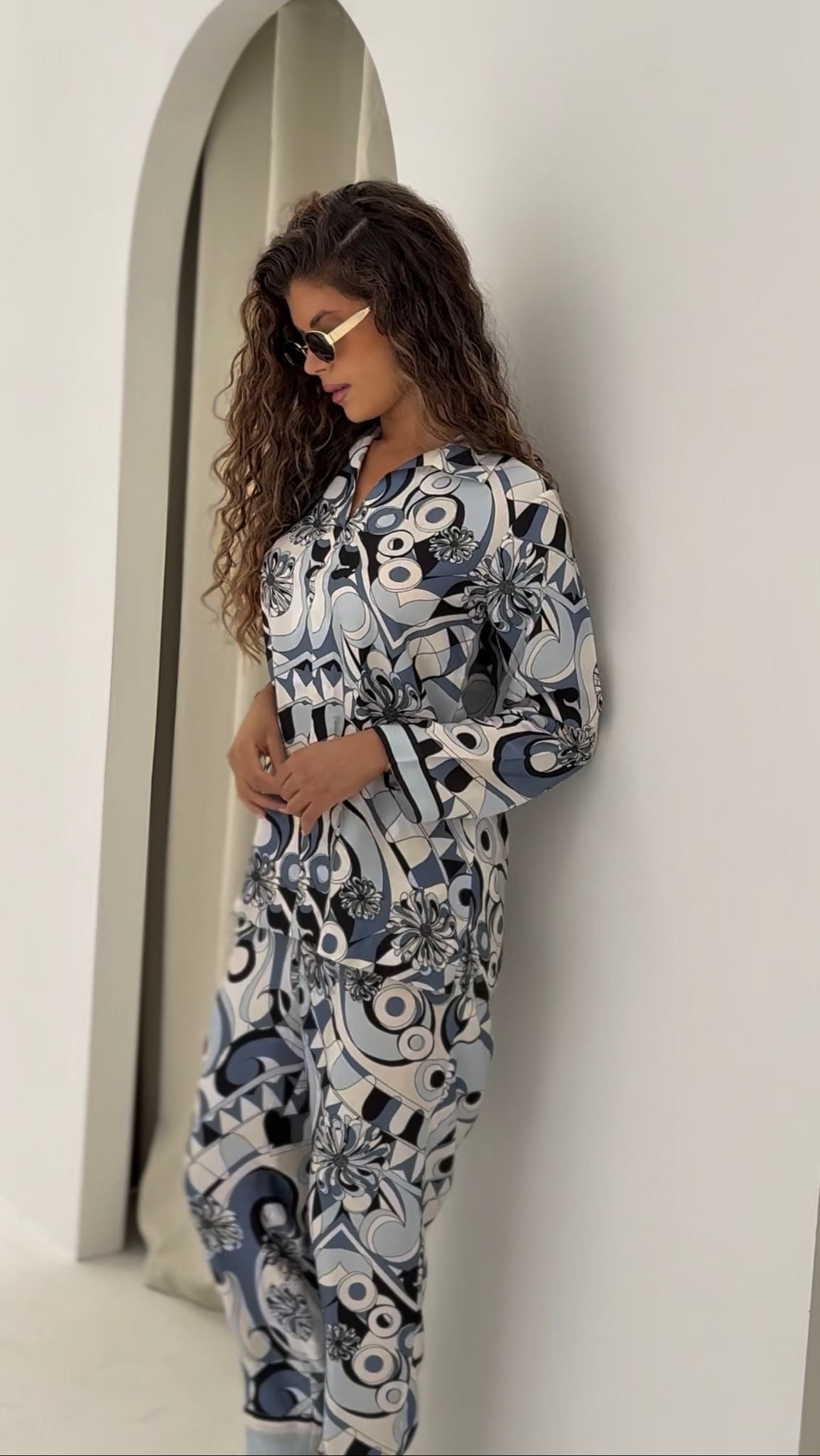 Introducing our newest arrival, a gorgeous patterned co ord with vibrant blue patterns.